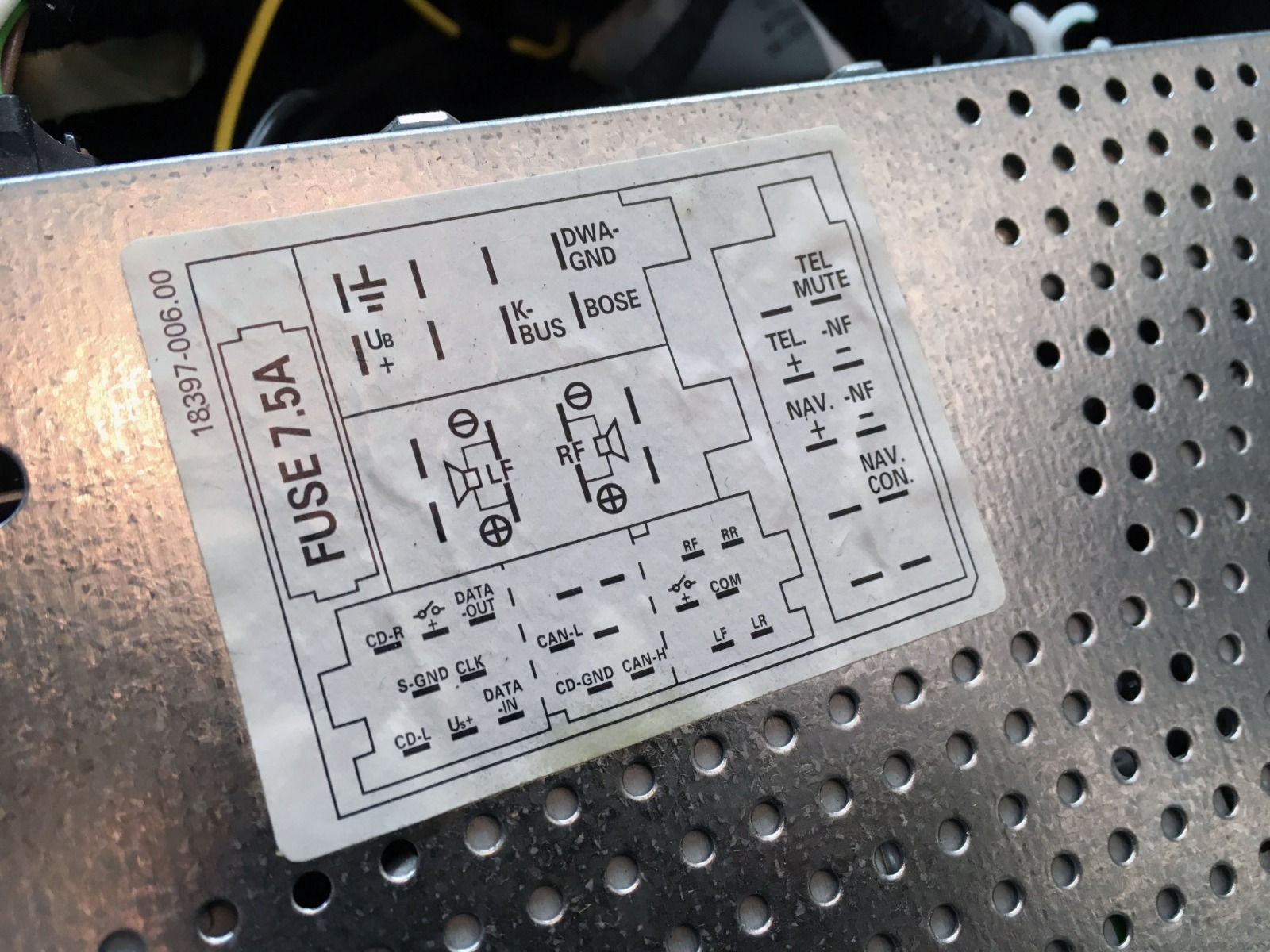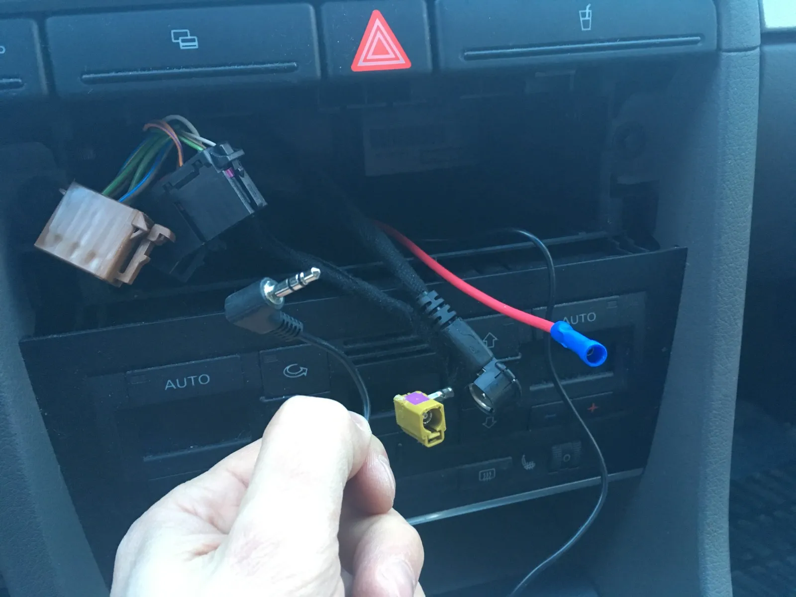 - Dette blir kursen for tenningsttrømmen til den nye radioen. Den originale radioen tennes ved hjelp av CAN-BUS/digitale signaler. Den nye ettermarkedsradioen trenger 12V tenningsstrøm. Sikringsuttaket kobles i HELT TIL SLUTT. Bildet illustrerer bare hvor den normalt kan plasseres.