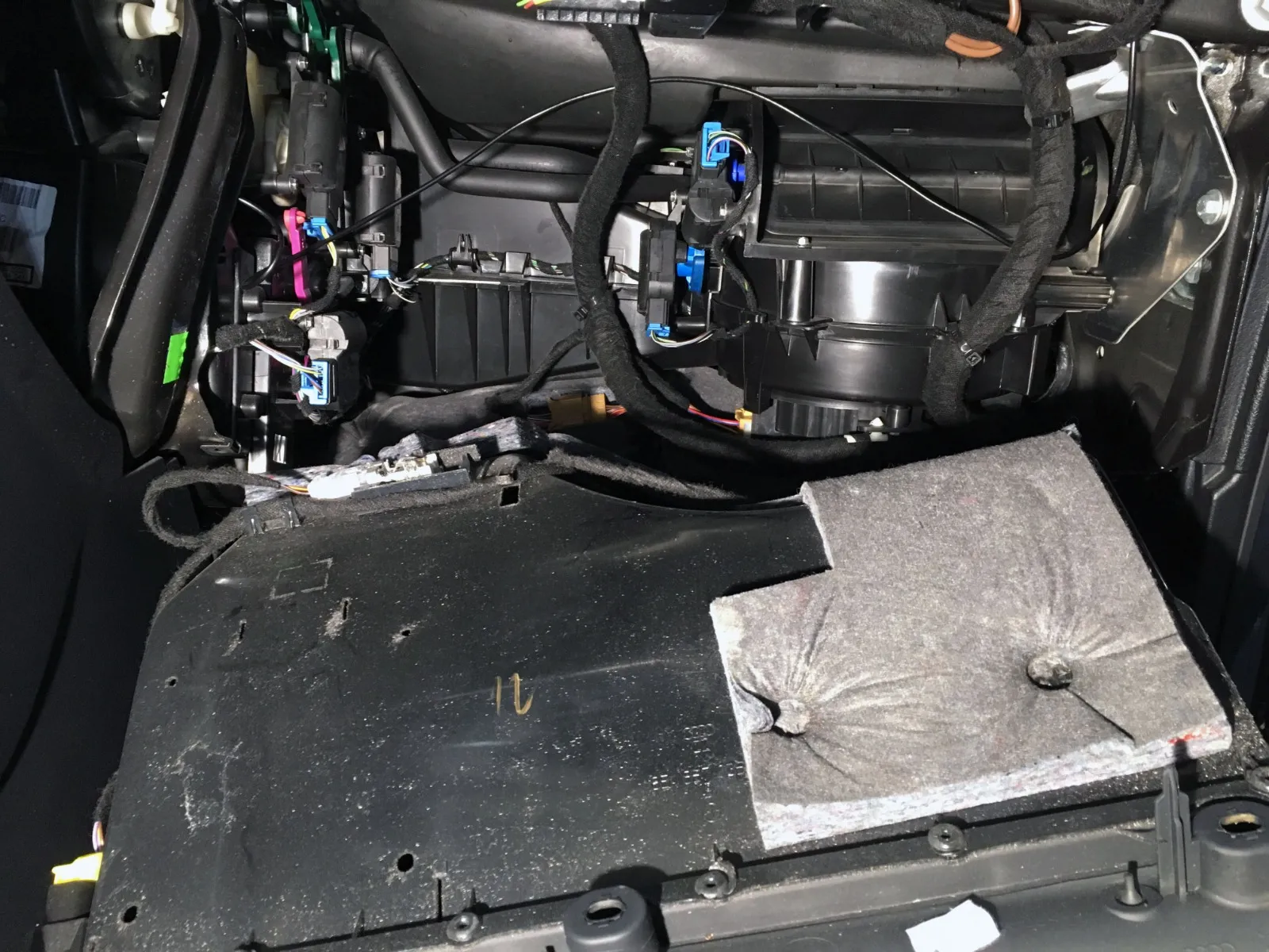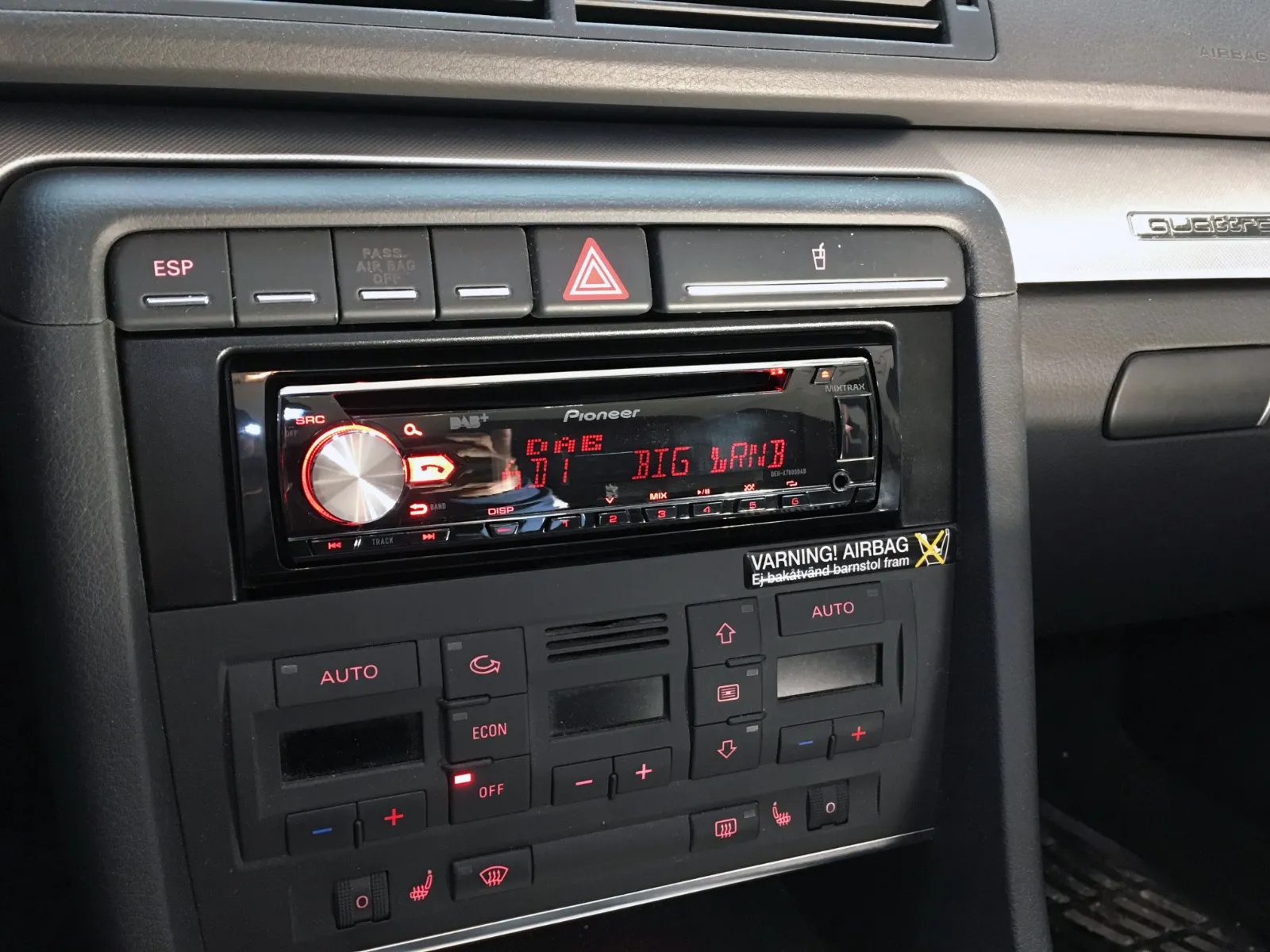 - Løsne sidepanel for å trekke kabel inn mot radio-lomme. Det anbefales også her å løsne hanskerom med pipenøkkel str. 8