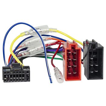 Orginalkabel Alpine til ISO-standard. Gammel type med lik avstand mellom gul og sort leder sammenlignet med de andre lederne i kontakten.