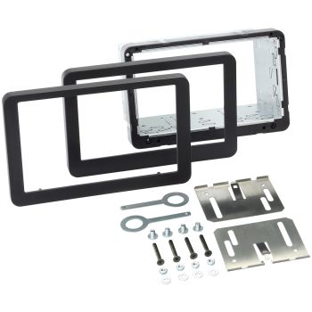 2-DIN radioadapter for å bygge om interiøret i en en spesifikk bilmodell til standard DIN-hull slik at man kan montere valgfri ettermarkedsradio i samme størrelse istedenfor den originalmonterte radioen.